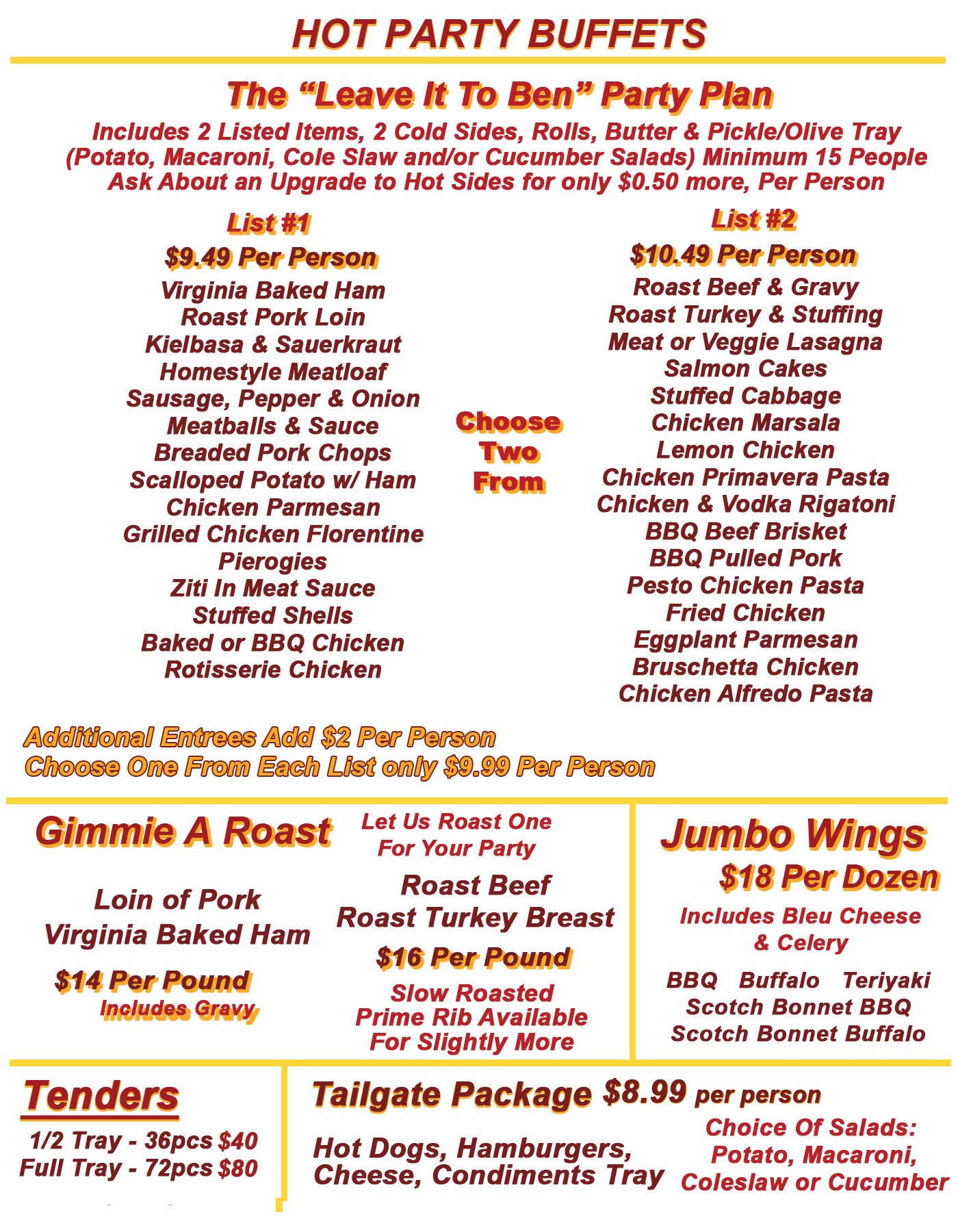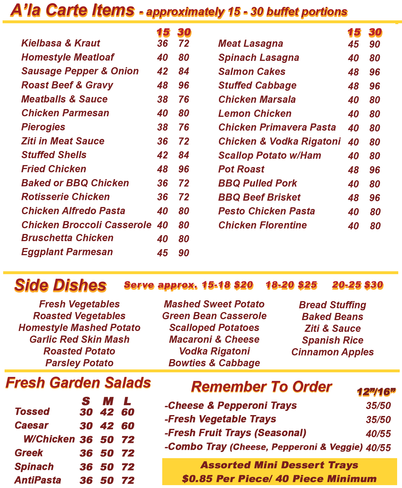 CALL AHEAD OR FAX YOUR ORDER FOR QUICK PICK-UP